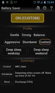 Deepsleep battery saver constantly puts the device to deepsleep mode while screen off. During deepsleep mode, Wifi, 3G are turned off, background apps are stopped. Therefore, most apps are not working, including Facebook, Google Service, etc,. It then constantly wakes up in order to download email, sync Facebook status, etc,. It's defined by deepsleep frequency and woke up durationIn advanced mode, you can customize more parameters, including day/night settings, active period, screen timeout, sync strategy, ignored apps, etc,.